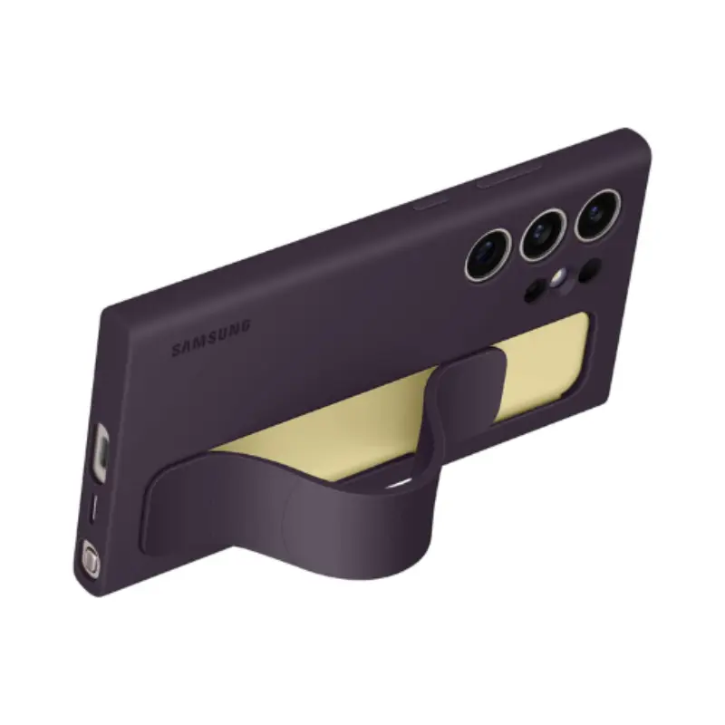 حافظة هاتف سامسونج جالاكسي S24 الترا ستاند جريب، غطاء سيليكون واقٍ مع حزام يد، مسند، تصميم متين