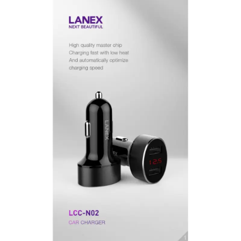 شاحن سيارة Lanex بشاشة رقمية LED ومنفذ USB مزدوج 2.1 أمبير