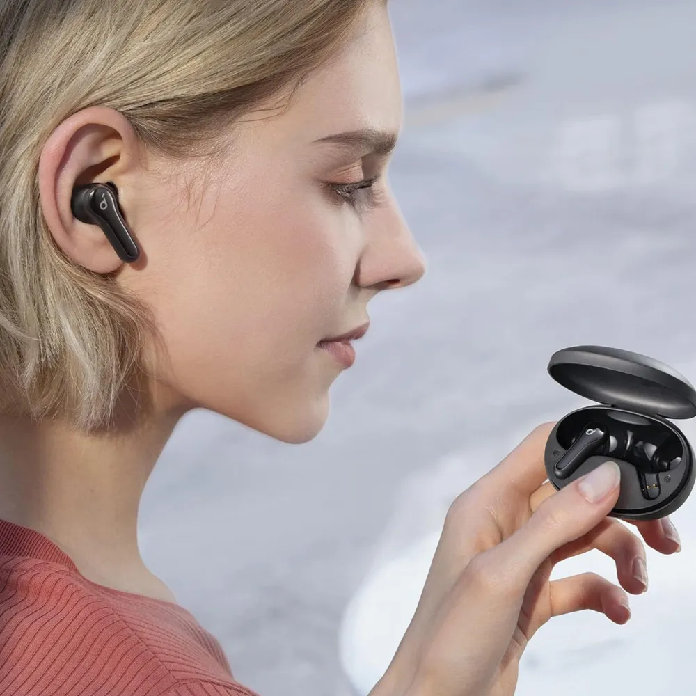 أنكر ساوند كور لايف نوت إي ، أسود ، سماعات أذن لاسلكية حقيقية مع صوت جهير كبير و 3 أوضاع مكافئ ، وقت تشغيل 32 ساعة ، USB-C للشحن السريع ، حجم صغير للتنقل ، سماعة رأس للعمل