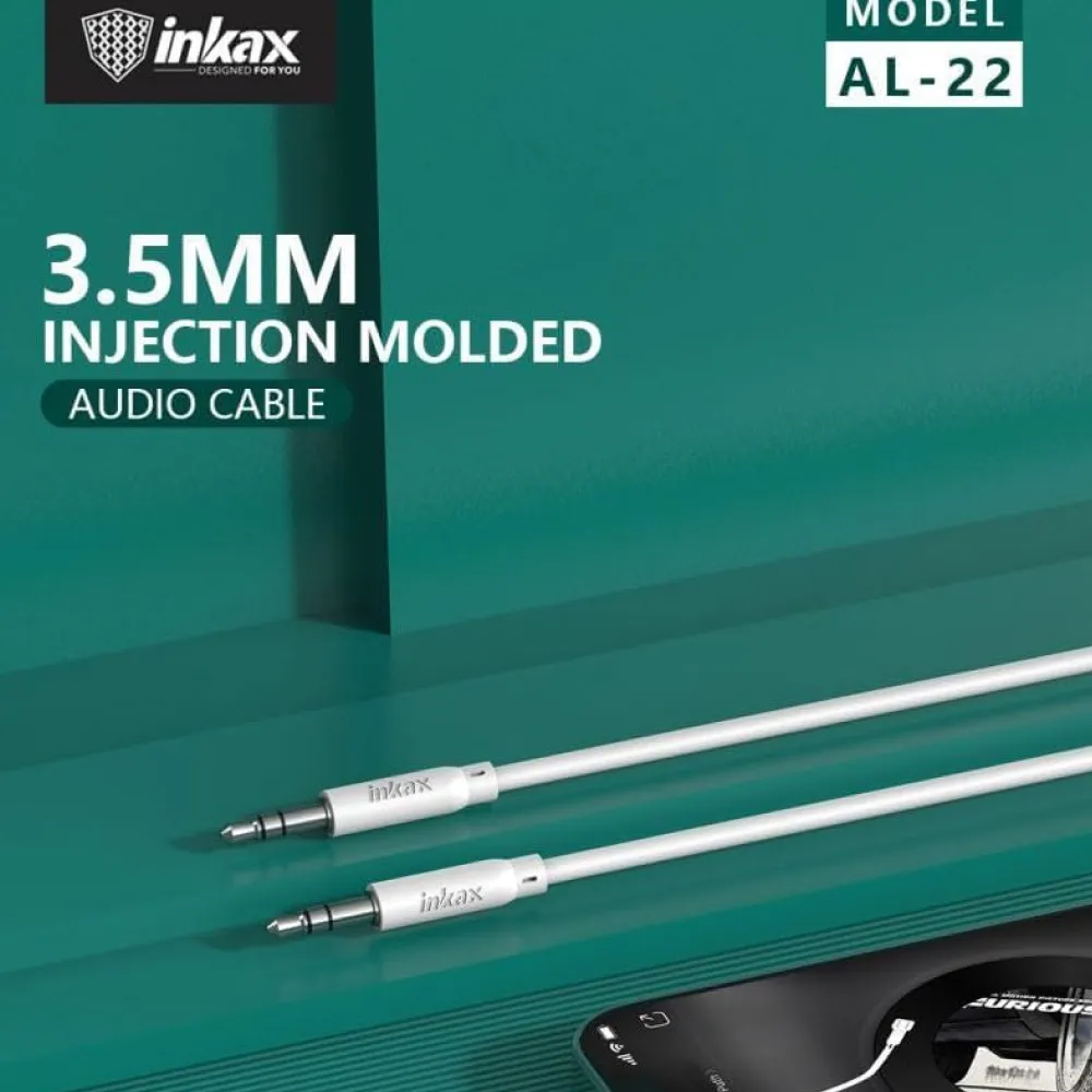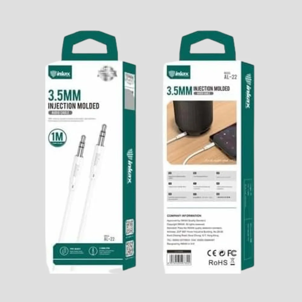 استمتع بصوت نقي وثابت مع كابل Inkax AUX مقاس 3.5 مم. كابل عملي بتصميم بسيط ولون أبيض أنيق، مثالي للاستخدام اليومي بدون تشويش.