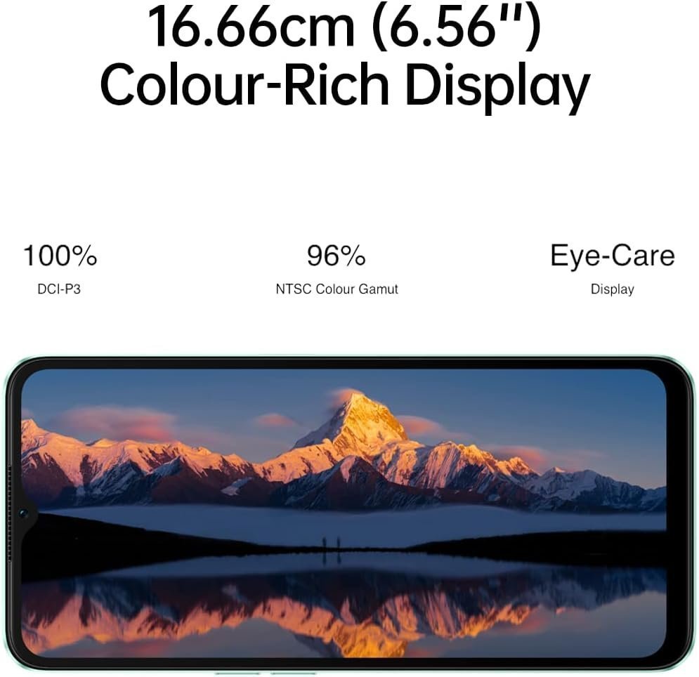 - الشاشة: 6.56 بوصة بدقة HD+ بها نوتش صغير