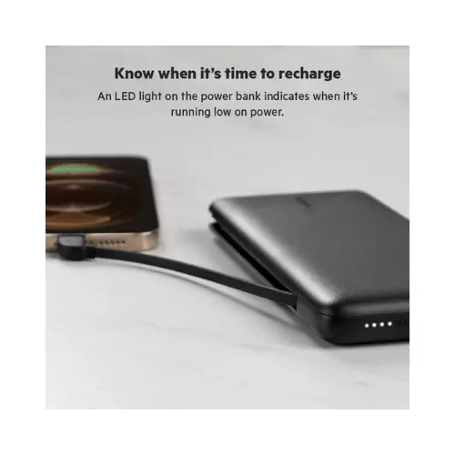 تصميم مدمج الكل في واحد: مع كابل Lightning المدمج وكابل USB-C، هذا الشاحن المحمول بقدرة 10 كيلو مللي أمبير في الساعة هو كل ما تحتاجه للحفاظ على تشغيل أجهزتك المفضلة طوال اليوم. يبلغ مقاسها 2.9 بوصة × 6.1 بوصة × 0.7 بوصة فقط ويزن 0.5 رطل.