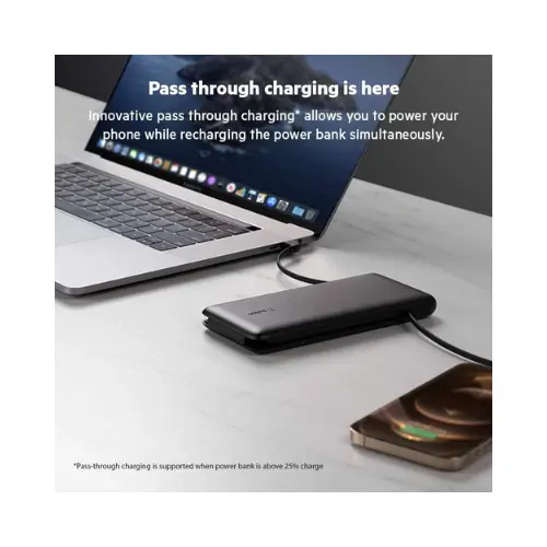 المرور من خلال الشحن: شحن سريع لجهاز واحد بسرعات تصل إلى 18 وات، بينما يتم إعادة شحن بنك الطاقة في نفس الوقت من خلال منفذ شاحن USB-C