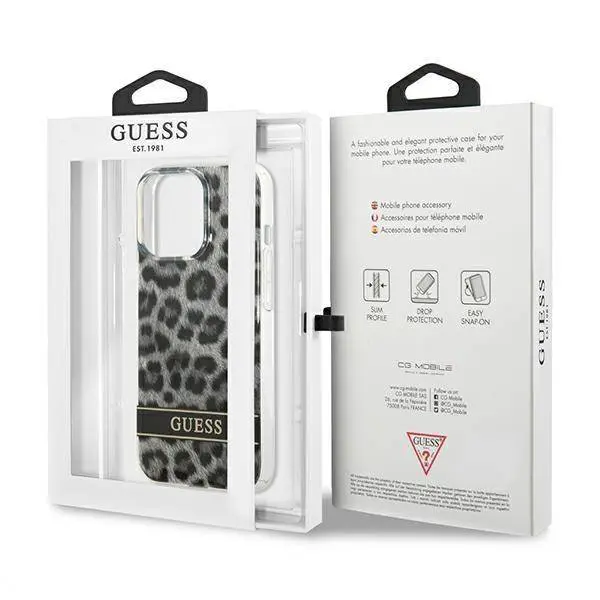 جراب GUESS الصلب باللون الرمادي المرقط لهاتف iPhone 13 pro max