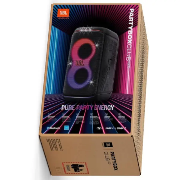 يحول JBL PartyBox Club 120 أي مساحة إلى حفلة وحيوية. يملأ صوت JBL Pro القوي الهواء بينما يتزامن عرض الأضواء الساحر لأضواء النجوم ومسارات الضوء الرائعة والتأثيرات القوية مع إيقاعك. قم بإقران أي جهاز بلوتوث على الفور وقم ببث قائمة تشغيل الحفلة المفضلة لديك، أو استخدم مدخلات الميكروفون والجيتار لمشاركة الصوت الخاص بك. وفي كلتا الحالتين، يمكنك توجيه تدفق الحفلة من خلال تأثيرات الحفلة التفاعلية الممتعة باستخدام تطبيق JBL PartyBox. مقبض مريح قابل للطي يجعل من السهل اصطحاب PartyBox Club 120 معك في أي مكان، كما أن التصميم المقاوم لرذاذ الماء يعني أنه لن يزعجه هطول القليل من المطر. فهو يوفر ما يصل إلى 12 ساعة من وقت التشغيل، وإذا كانت الحفلة لا تزال مستمرة بحلول ذلك الوقت، فما عليك سوى تبديل البطارية القابلة للاستبدال والحفاظ على تشغيل الموسيقى والأضواء بقوة. للحصول على وقت أكبر، قم بإقران جهازي استريو JBL PartyBox Club 120s للحصول على مساحة صوتية أوسع، أو استخدم تطبيق JBL PartyBox لتوصيل مكبرات صوت متعددة تدعم تقنية JBL Auracast لاسلكيًا. انطلق إلى الحفلة مع JBL PartyBox Club 120.