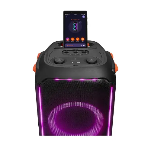 - يحول مكبر الصوت المحمول JBL PartyBox 710 حدثك القادم إلى حفلة حقيقية أو حفلة موسيقية أو ملهى ليلي مع عرض ضوئي ديناميكي وملون و 800 واط قوي من صوت JBL الأصلي الاحترافي