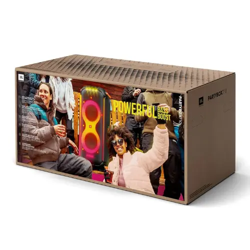 - المنتجات التي تم تسليمها: 1 × مكبر صوت JBL PartyBox 710 للحفلات مع مصابيح مدمجة وتصميم IPX4 مقاوم للرذاذ ، 1 × سلك طاقة تيار متردد ، 1 × دليل بدء سريع وتعليمات السلامة ، باللون الأسود