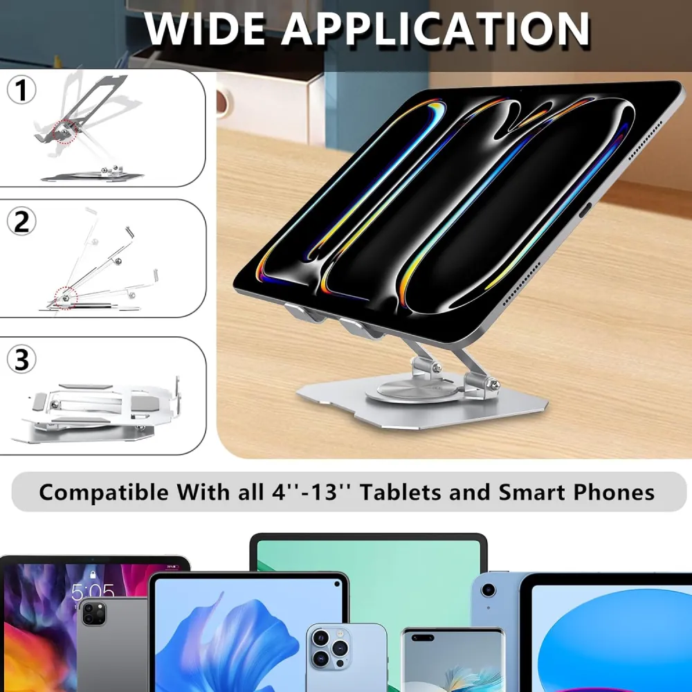استمتع بالمرونة الكاملة مع حامل الأجهزة اللوحية القابل للتدوير 360° من Bighan! مناسب للمكاتب، الألعاب، مكالمات الفيديو أو الترفيه، ويحمل الأجهزة اللوحية، الهواتف الذكية، وحتى Nintendo Switch بأمان مع إمكانية التدوير لأي زاوية تحتاجها. تصميم أنيق، قابل للطي، وسهل الحمل – رفيقك المثالي لأجهزتك!