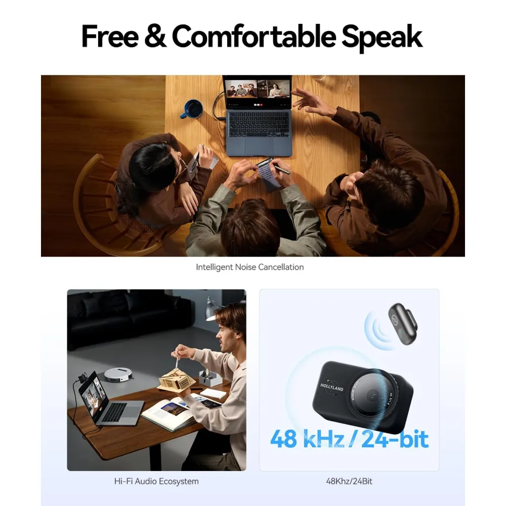 ارتقِ بمستوى المحتوى الخاص بك إلى معايير السينما مع حزمة البث Hollyland Lyra UHD 4K. تجمع هذه المجموعة المتكاملة بين دقة الـ 4K المذهلة والصوت اللاسلكي الاحترافي من ميكروفون LARK A1، مما يضمن لك ظهوراً وصوتاً فائق النقاء، سواء كنت تبث مباشرة، أو تقدم ندوة ويب، أو تسجل مقطع فيديو جديداً.