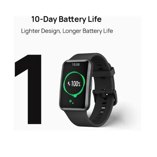 • تعمل هذه الساعة الذكية الرفيعة والخفيفة بشكل لا يصدق على تحسين أداء البطارية إلى 21 جرامًا فقط، مما يجعلها رفيقًا مثاليًا طوال اليوم ويمكن أن تدوم لمدة 10 أيام. ومع تقنية الشحن السريع، فإن الشحن لمدة 5 دقائق يمنحك عمر بطارية يكفي ليوم كامل!
