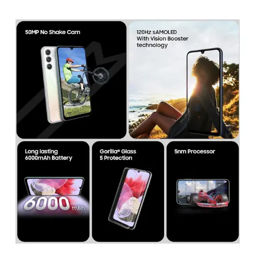 إذا كنت تبحث عن هاتف ذكي جديد يوفر لك أداء جيد مع تجربة ممتعة في التصوير أو المشاهدة فقد يكون هاتف Samsung Galaxy M34 5G الخيار المناسب لك حيث يأتي بشاشة Super AMOLED بتردد 120 هيرتز مع كاميرا خلفية 50 ميجا بكسل تدعم المثبت البصري ودعم تصوير فيديو بجودة الـ 4K مع بطارية عملاقة بسعة 6000 مللي أمبير وشحن سريع 25 واط واستخدام معالج Exynos 1280 من تصنيع سامسونج .