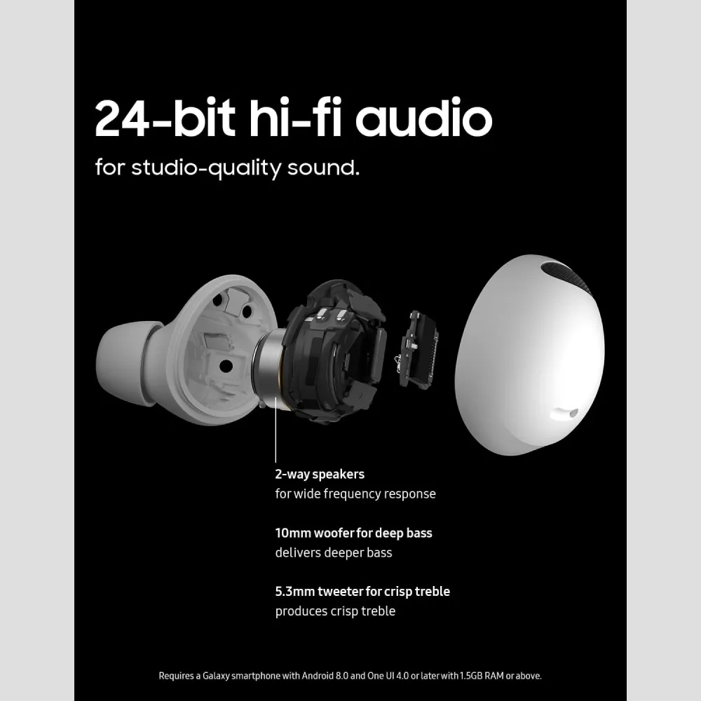 - الاتصال: تقنية بلوتوث 5.3، دعم كوديك سامسونج السلس (SSC)، وميزة التنقل التلقائي السلس بين أجهزة جالكسي المختلفة.