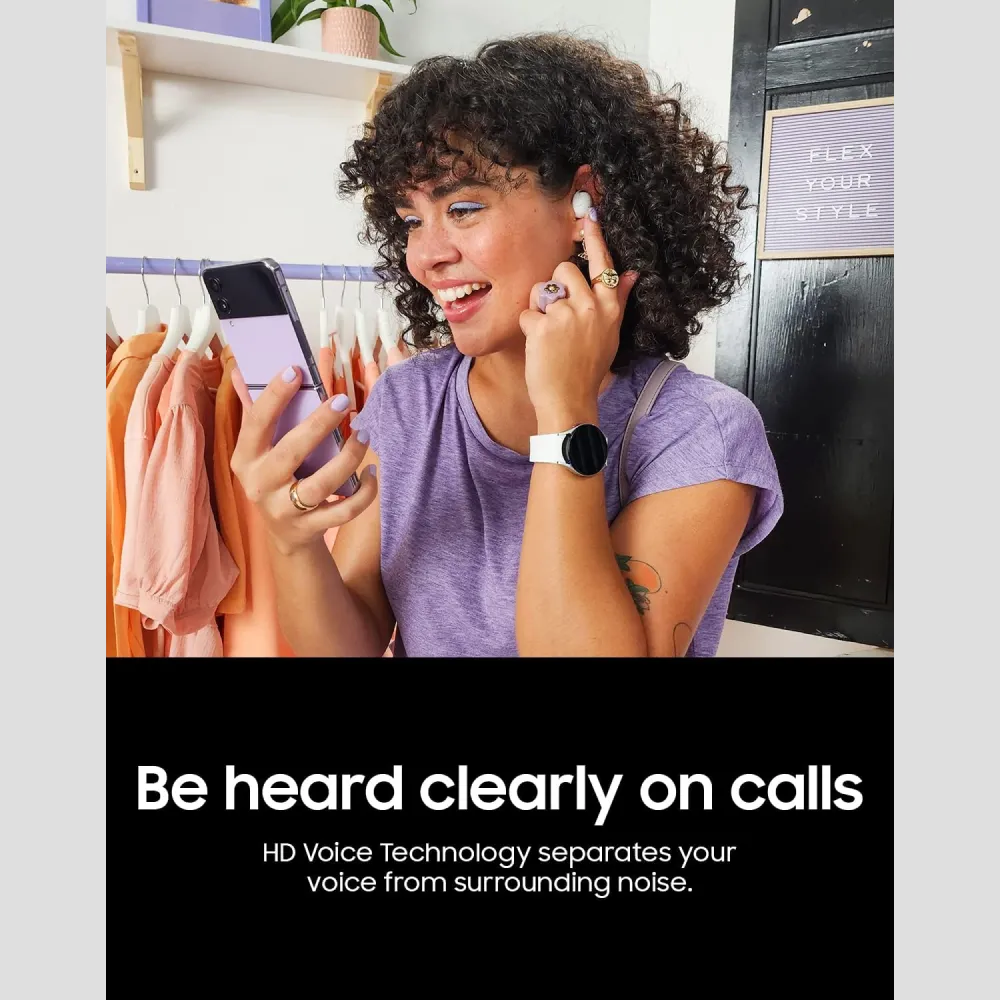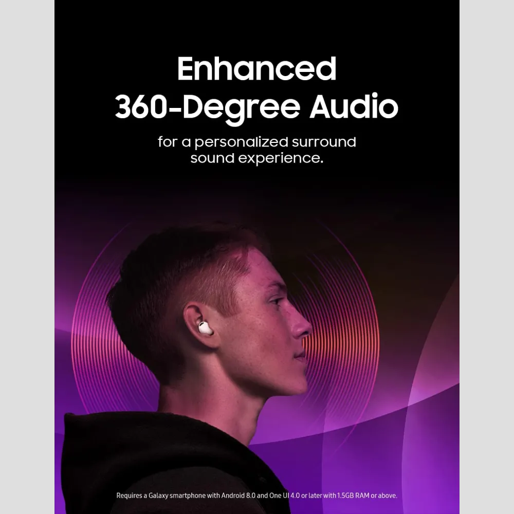 تصل سماعات Galaxy Buds2 Pro بجودة الصوت اللاسلكي إلى آفاق جديدة، حيث توفر صوتاً بنقاء 24 بت لضمان سماع كل نغمة وكأنك في قلب الاستوديو. السماعة مزودة بثلاثة ميكروفونات متطورة تعمل على تتبع وإلغاء أدق الأصوات الخارجية، حتى صوت الرياح، بفضل ميزة إلغاء الضوضاء النشط (ANC) الذكية. ما يميزها فعلاً هو خاصية “اكتشاف الصوت” (Voice Detect) التي تحول السماعة تلقائياً إلى وضع الصوت المحيطي وتخفض صوت الموسيقى بمجرد أن تبدأ في التحدث، مما يسهل عليك التواصل دون خلع السماعة. بفضل تقنية “الصوت المحيطي 360 درجة”، ستحصل على تجربة استماع غامرة تشبه المسرح وتتحرك مع حركة رأسك. تم تصميم السماعة لتكون أصغر بنسبة 15% من الموديل السابق لضمان ثباتها وراحتها في الأذن طوال اليوم، كما أنها مقاومة للماء بمعيار IPX7 وتدعم التنقل التلقائي السلس بين هاتفك وجهازك اللوحي وساعة جالكسي، لتكون الرفيق الذكي والأقوى في حياتك الرقمية.