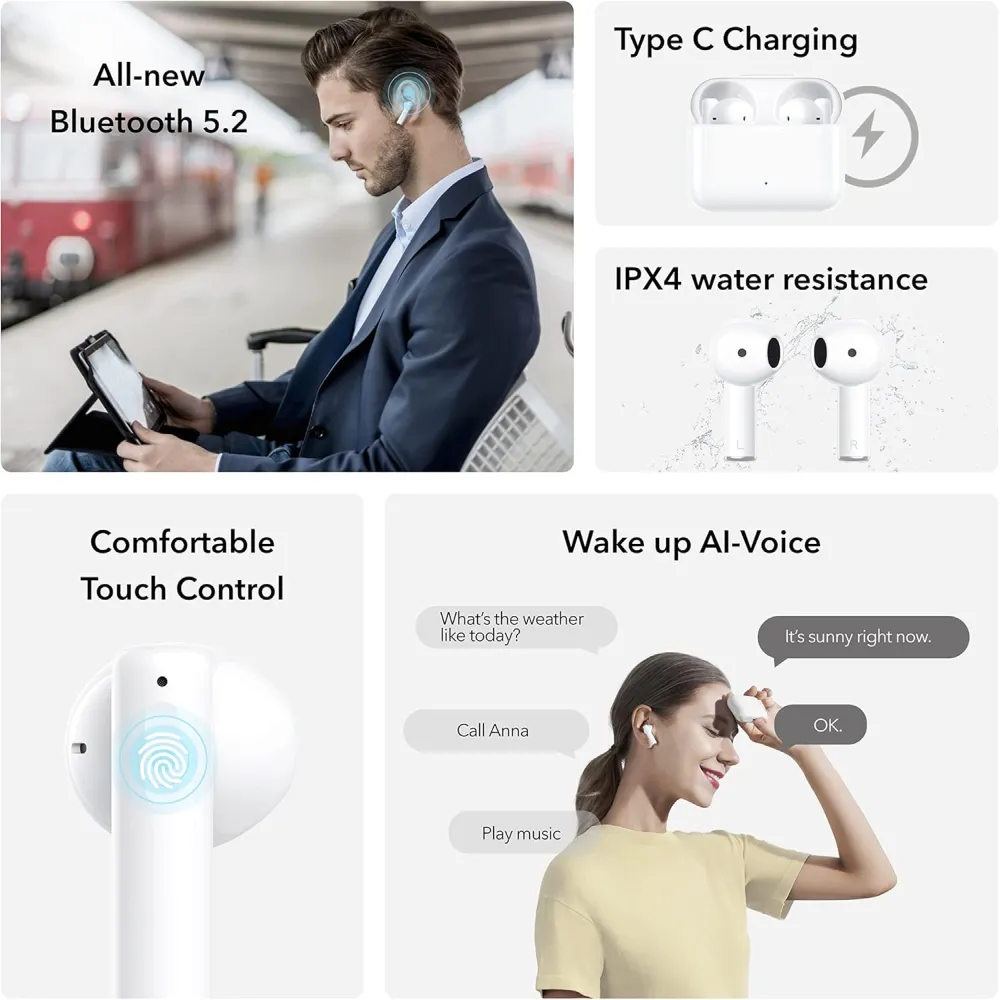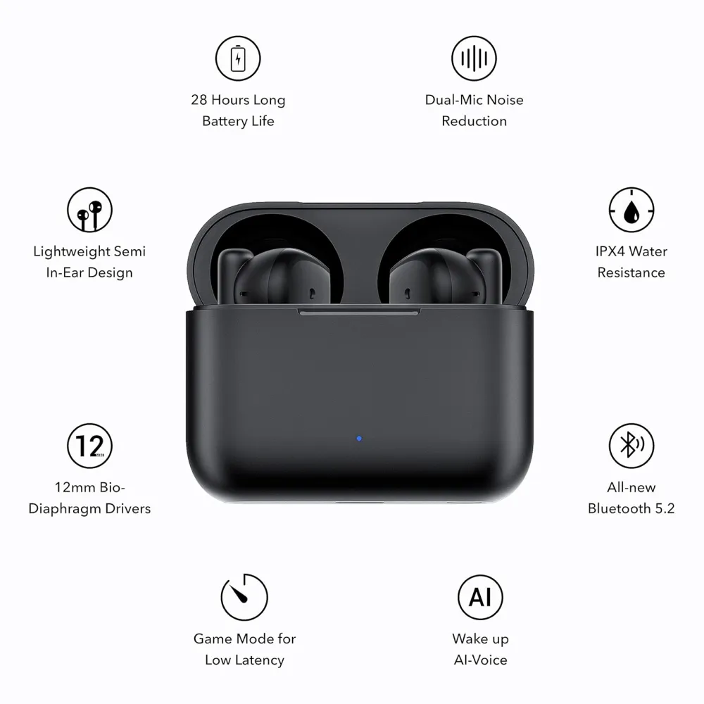 - التصميم والملائمة: تصميم "نصف أذني" مريح (Semi-in-ear)، خفيف الوزن ولا يسبب ضغطاً للأذن للاستخدام طوال اليوم.