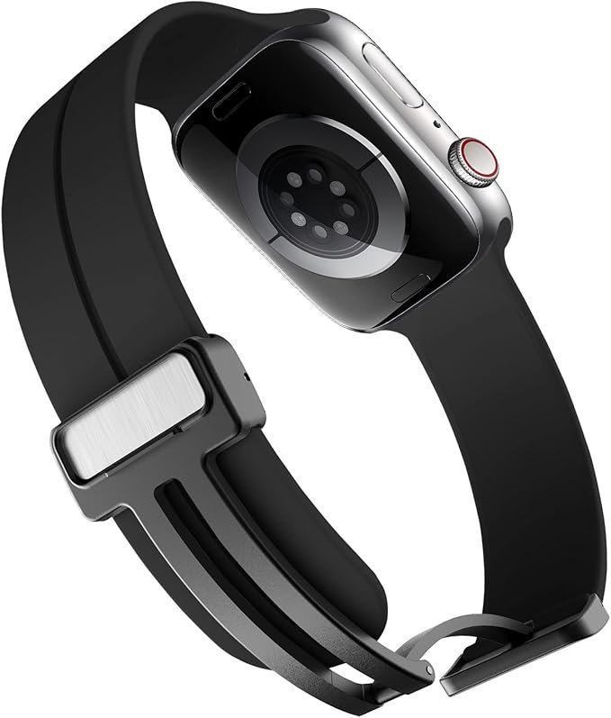 سوار سيليكون مغناطيسي أنيق ومرن وآمن — يوفر راحة طوال اليوم، ومظهرًا حديثًا، ومشبك مغناطيسي قوي يتناسب بشكل مثالي مع أي معصم. متوافق مع حزام ساعة آبل ألترا بمقاسات 49 مم، 45 مم، 44 مم، 42 مم، 41 مم، 40 مم، و38 مم للرجال والنساء. يعد خيارًا مثاليًا كبديل للسوار لسلسلة iWatch 9/8/7/6/5/4/3/2/SE/Ultra 2.
