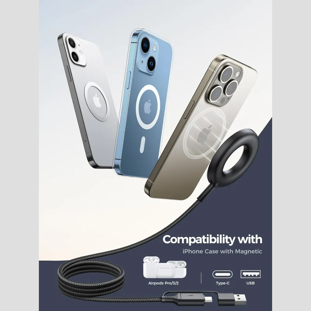 - إلى: شحن لاسلكي مغناطيسي (متوافق مع MagSafe).