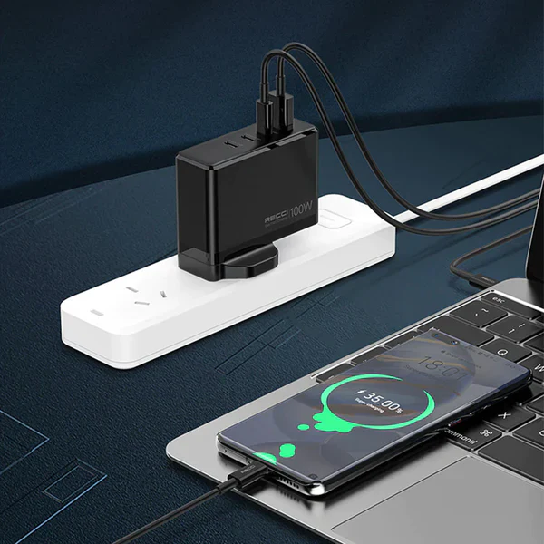 إن شاحن Recci 100W GaN الذكي RC41 هو شاحن قوي وفعال.
