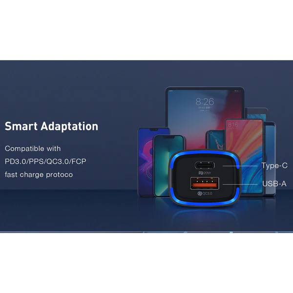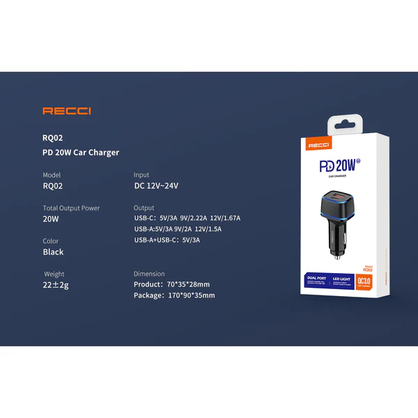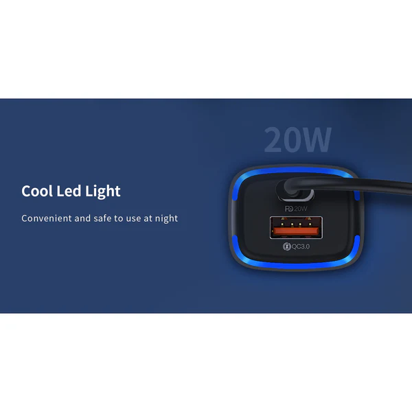 احتفظ بأجهزتك مشحونة وجاهزة للاستخدام مع شاحن السيارة ريتشي PD 20 واط مع ضوء LED. مثالي للتنقلات اليومية، ورحلات الطريق، وجميع احتياجات الشحن أثناء التنقل!