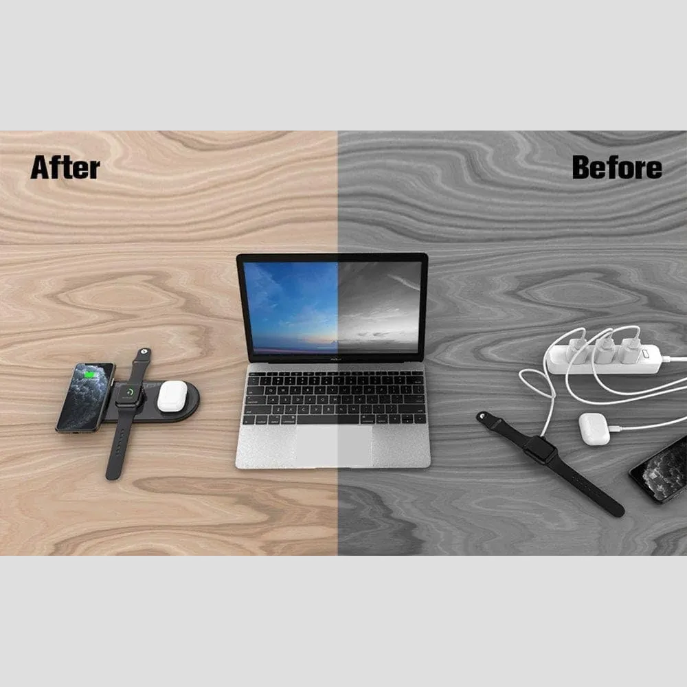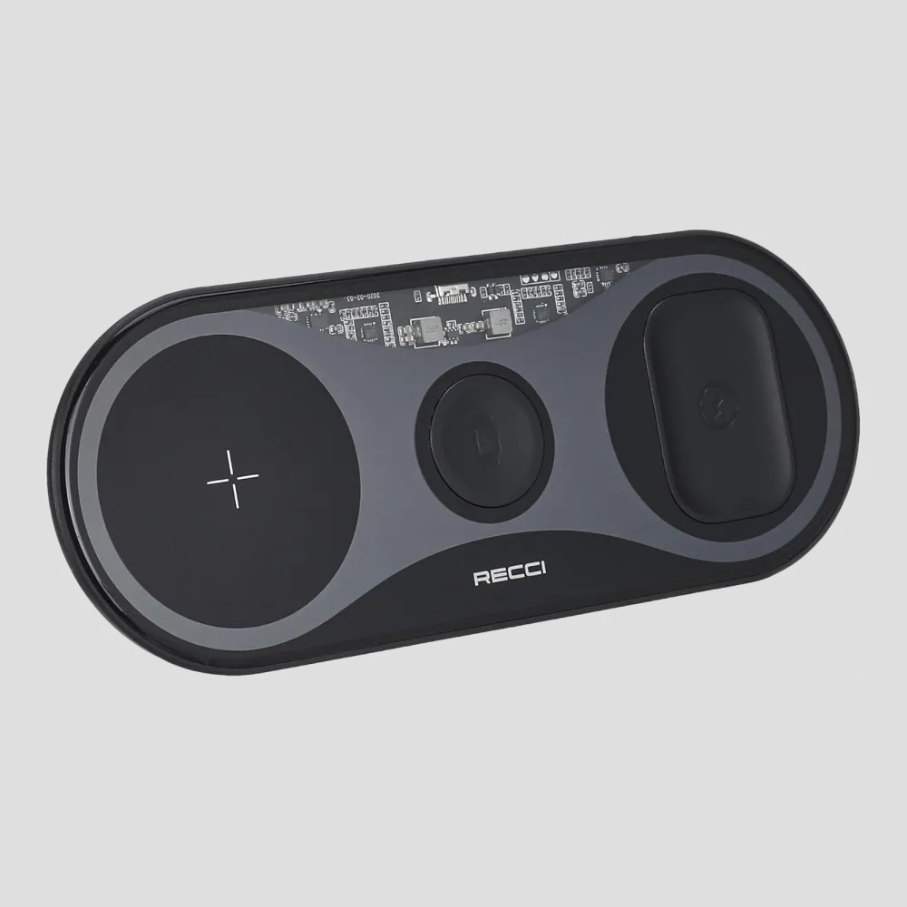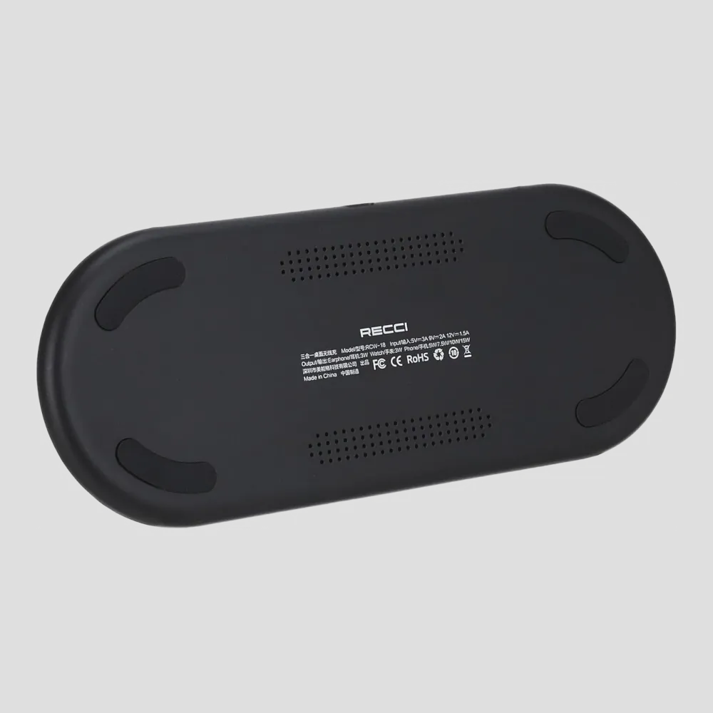 شاحن لاسلكي Recci RCW-18 ثلاثي في واحد – محطة شحن سريعة لـ iPhone وApple Watch وAirPods