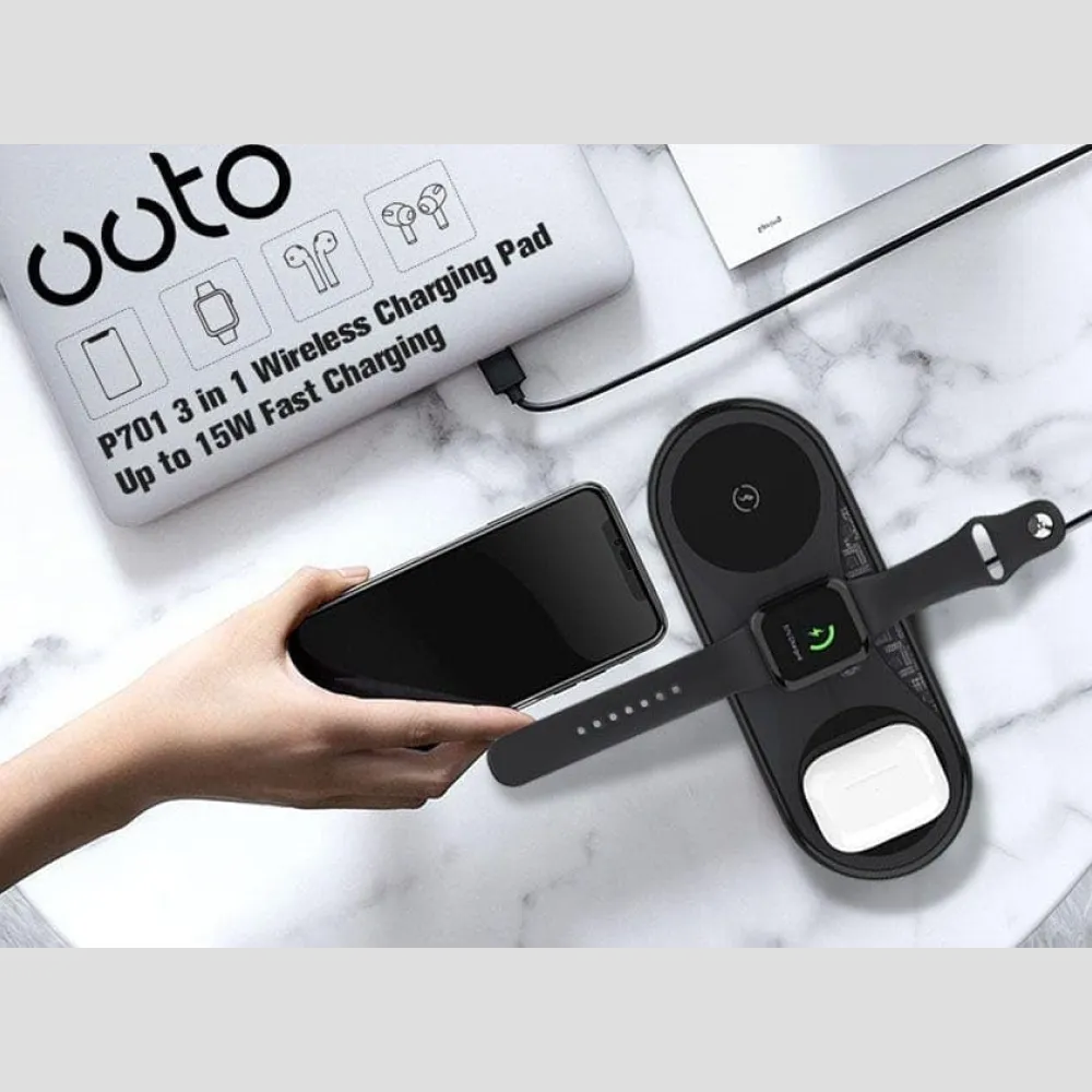 يُعد Recci RCW-18 شاحن لاسلكي 3-في-1 الحل المثالي لمستخدمي أجهزة Apple، حيث يتيح لك شحن iPhone وApple Watch وAirPods في وقت واحد بدون فوضى الأسلاك.