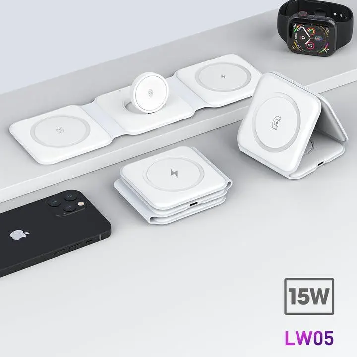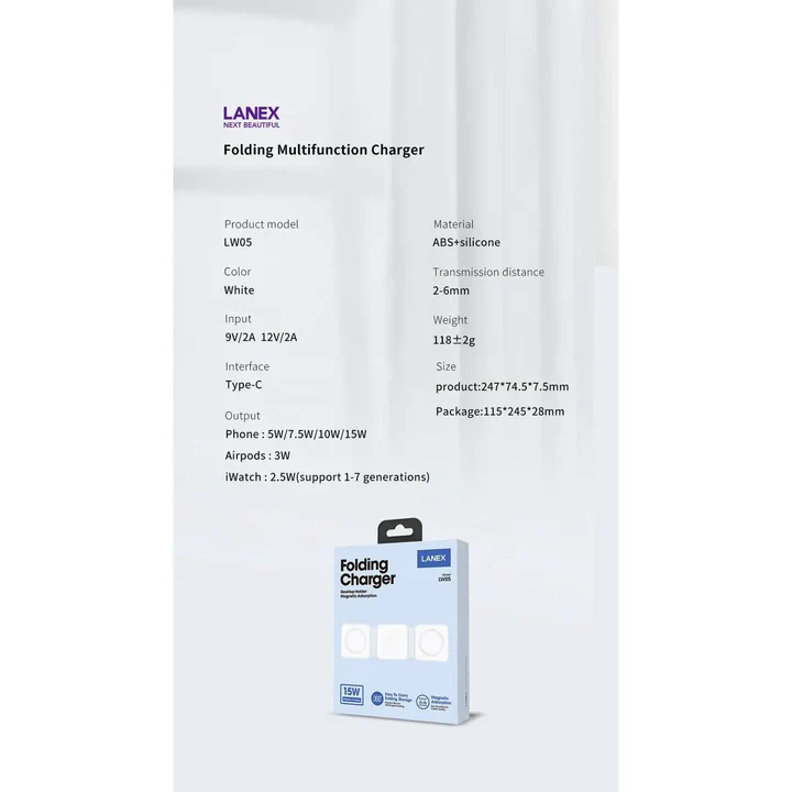 شاحن Lanex قابل للطي وحامل سطح المكتب شاحن متعدد الوظائف بالامتصاص المغناطيسي