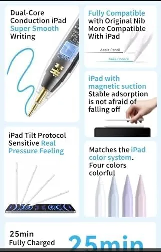قلم Anker هو قلم أنيق وعالي الدقة مصمم للكتابة والرسم بسلاسة على شاشات اللمس. يتميز بحساسية الضغط، ويوفر إحساسًا طبيعيًا مشابهًا لقلم الرصاص الحقيقي. مع بطارية تدوم طويلاً وقدرات شحن سريعة وقبضة مريحة، فهو مثالي للفنانين والطلاب والمحترفين على حد سواء. إن توافقه مع معظم الأجهزة التي تعمل باللمس يجعله أداة متعددة الاستخدامات للملاحظات والرسومات والأعمال الفنية الرقمية.