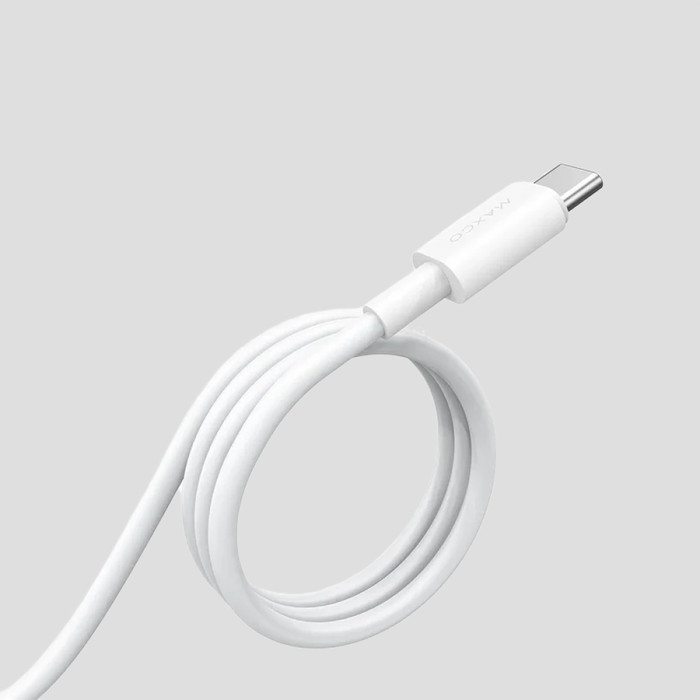 إليك نظرة عامة على كابل البيانات Maxco MTC-P03CC من Type-C إلى Type-C بطول 100 سم – أبيض: