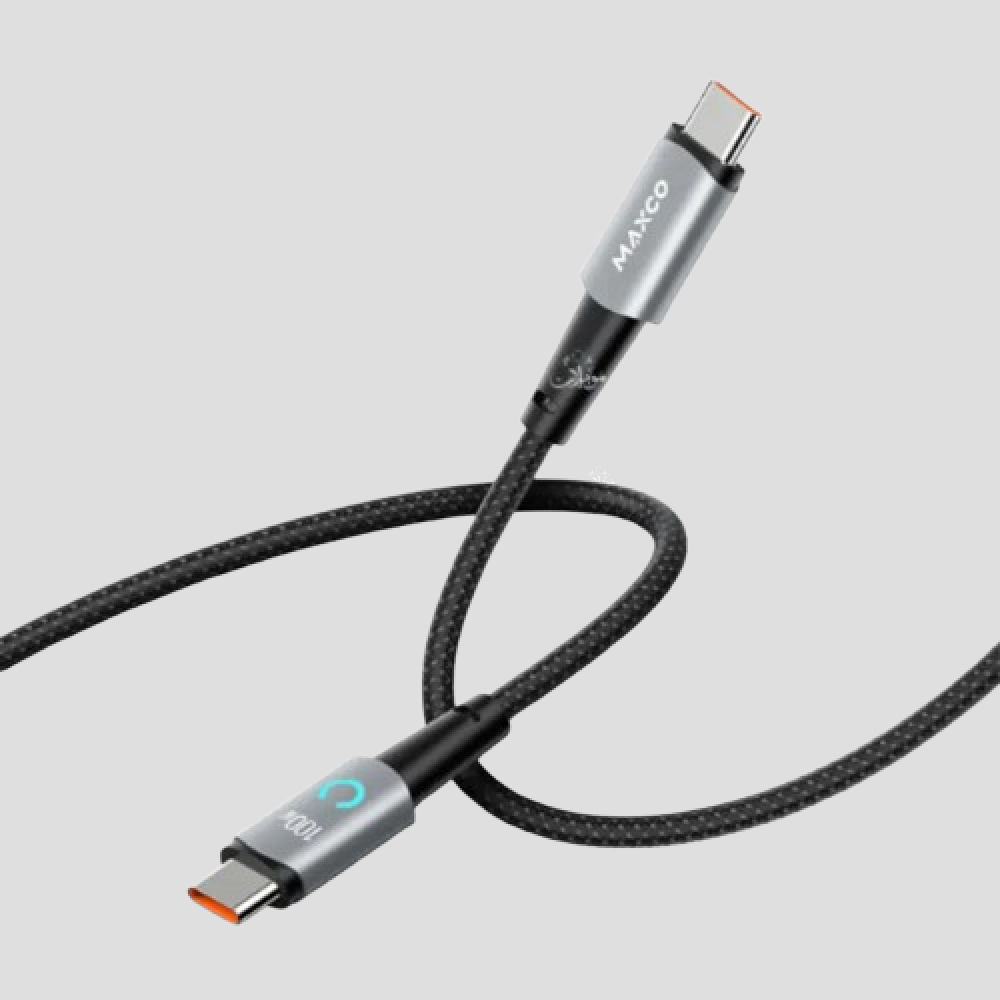 Maxco MS03CC كابل مجدول 100 وات من النوع c إلى النوع c مع شاشة رقمية 200 سم - أسود