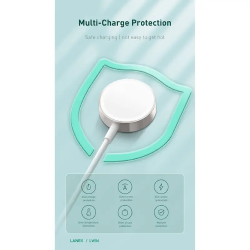 كابل مغناطيسي لساعة Lanex LW06 Type-C 3.5 وات 120 سم – أبيض