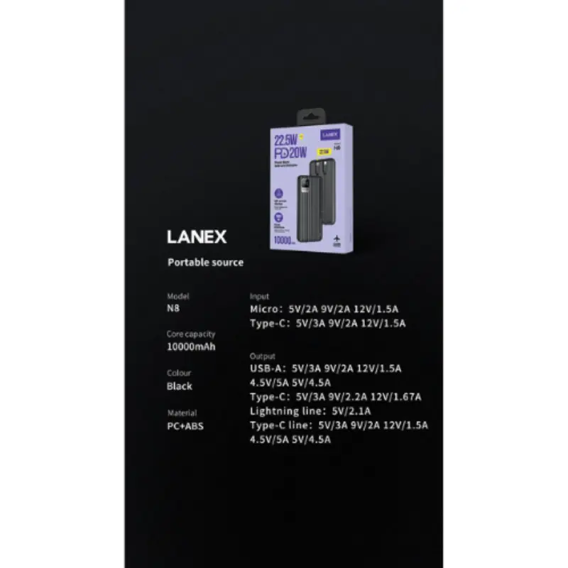 موديل Lanex باور بانك 10000 مللي أمبير n8