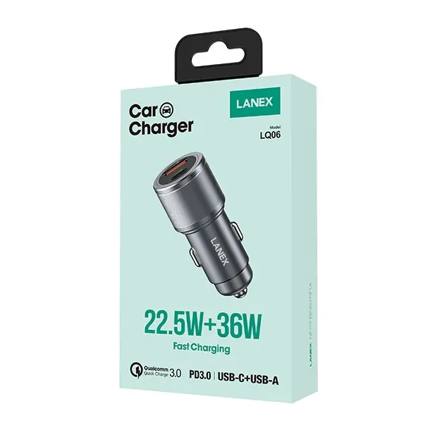 لانيكس شاحن سيارة 22.5+36 واط شاحن سريع LQ06