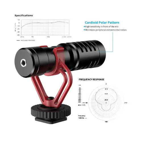 Candc DC-C9 هو ميكروفون قلبي الشكل، تم تصميمه خصيصًا لتحسين جودة صوت مقاطع الفيديو على أساس الميكروفونات المدمجة. مع تضمين كل من كابل TRS وكابل إخراج TRRS، يمكن استخدامه على الهواتف الذكية والكاميرات وكاميرات الفيديو ومسجلات الصوت وأجهزة الكمبيوتر وأجهزة تسجيل الصوت/الفيديو الأخرى. يأتي DC-C9 بحجم صغير وهيكل من الألومنيوم خفيف الوزن، ولن يشكل عبئًا ثقيلًا أثناء التصوير. تصميم التوصيل والتشغيل، لا داعي للقلق بشأن حالة البطارية. متضمن بالداخل مع حامل مضاد للصدمات، والذي يمكنه تقليل الاهتزاز غير المرغوب فيه والكابل والضوضاء بشكل فعال. يشتمل أيضًا على درع فروي مقاوم للرياح، والذي يستخدم خصيصًا لتقليل الرياح والضوضاء البيئية للتسجيل في الهواء الطلق، والتأكد من وضوح الصوت تمامًا.