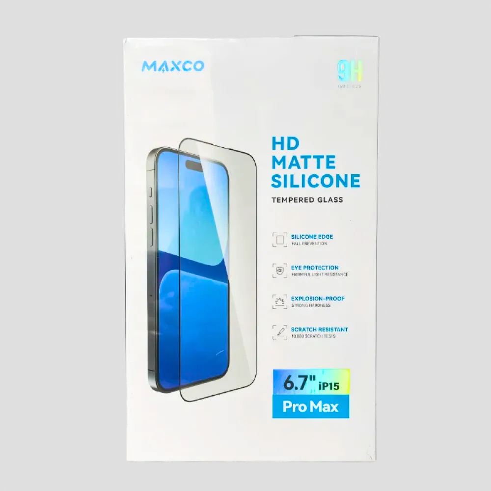 واقي شاشة ماكسيكو – سيليكون عالي الدقة غير لامع – زجاج مقسّى لآيفون 15 برو ماكس