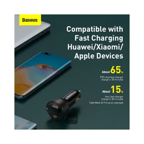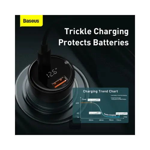 Baseus CCZX-01 100W USB + Type-C / USB-C شاشة رقمية PPS شحن سريع للسيارة 6 (أسود)