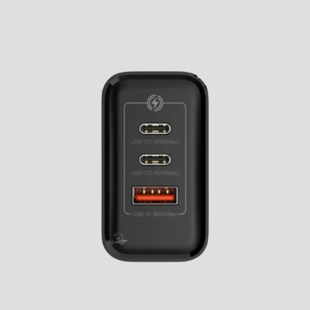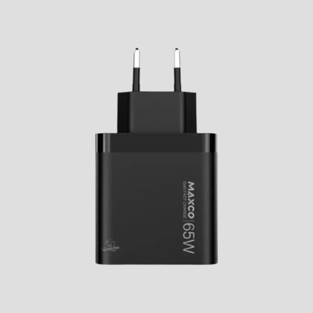 Maxco MC15E GaN Fast Charger PD 65W 3-Ports EU Plug Design Standard – أسود