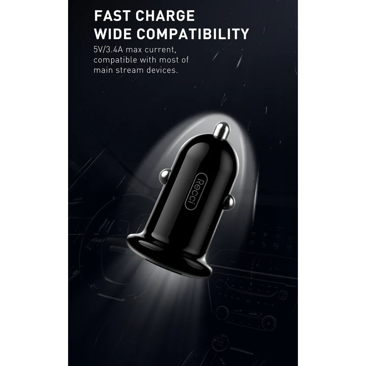 RECCI RQ08 15W+15W متعدد الوظائف مع شاحن سيارة FM - أسود