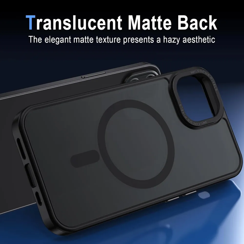 التصميم المطفي الشفاف يحافظ على شكل الهاتف الأصلي ويقلل من البصمات والاتساخات. كما يأتي الكفر مزودًا بمغناطيس قوي متوافق مع MagSafe لثبات مثالي أثناء الشحن اللاسلكي واستخدام الإكسسوارات.