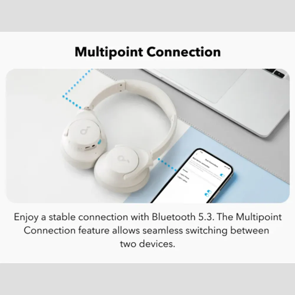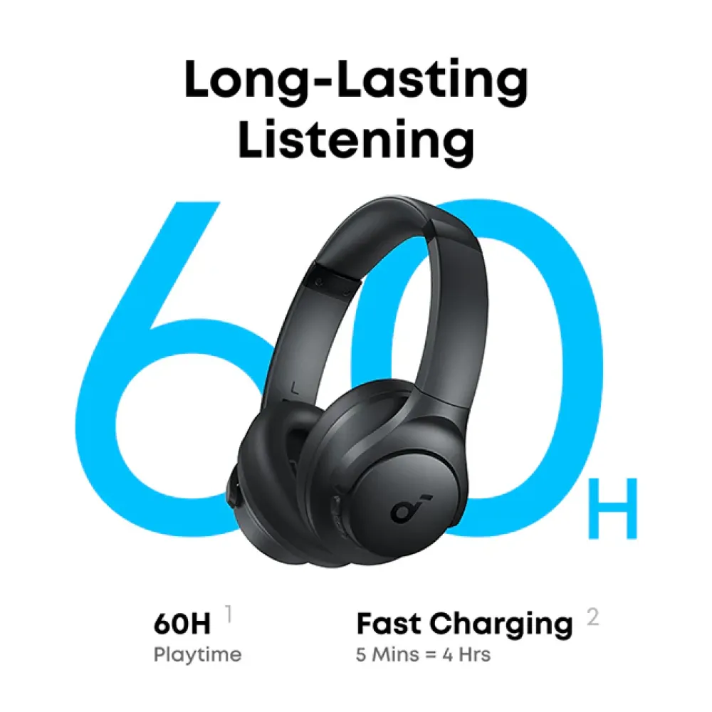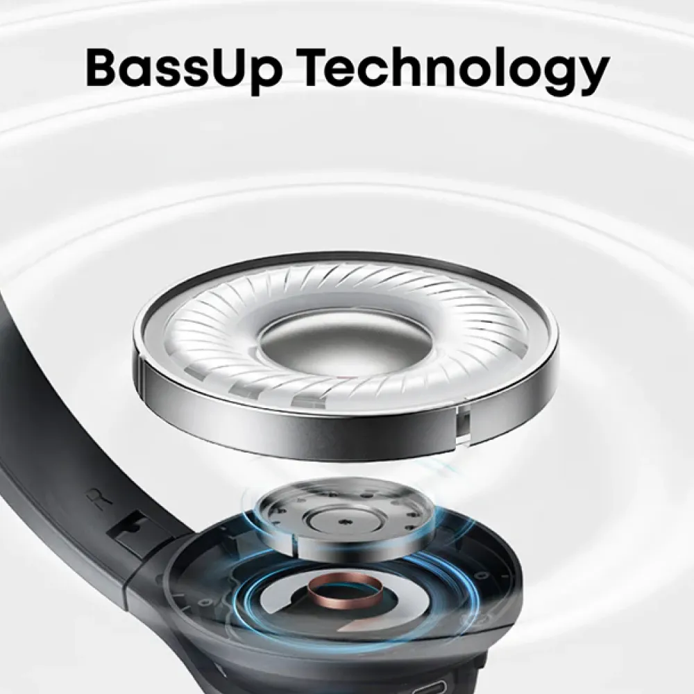 With One-Touch Bass Boost, you can instantly enhance low frequencies for a more powerful listening experience. Bluetooth 5.3 ensures a fast, stable, and energy-efficient connection, while the massive 60-hour playtime lets you enjoy days of use on a single charge. The detachable ear cushions add extra convenience, making cleaning or replacement easy, and the over-ear design provides comfort even during long listening sessions.