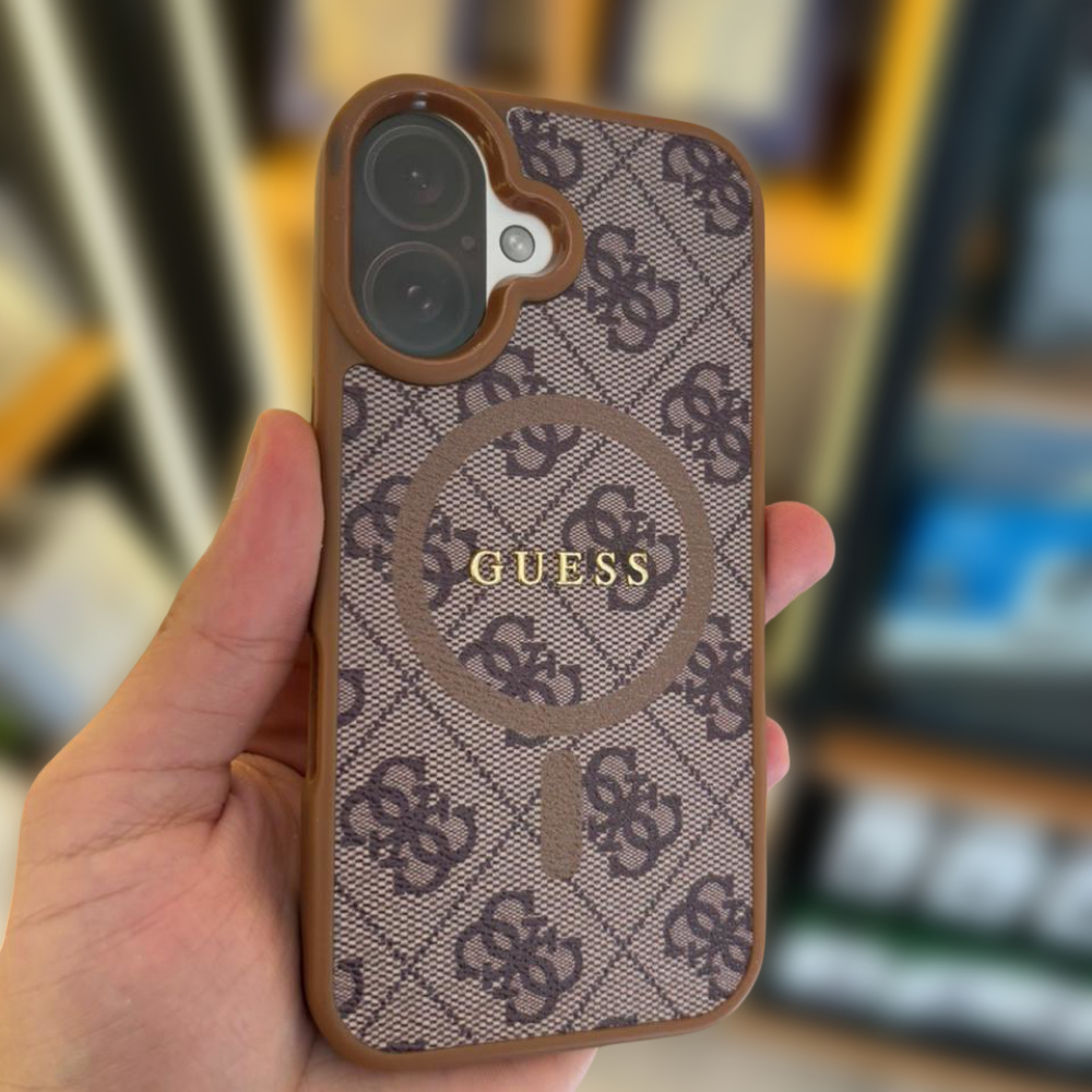 A premium GUESS cover designed for iPhone 16, offering elegant style, strong protection, and a luxury finish with precise cutouts and shock-absorbing material.