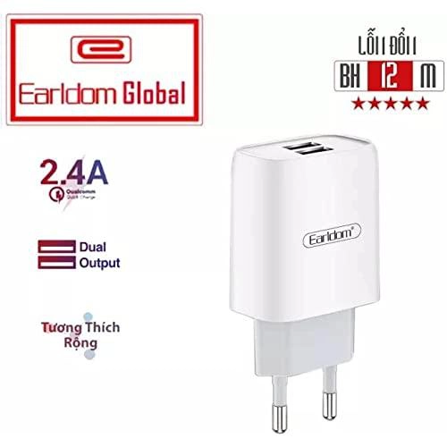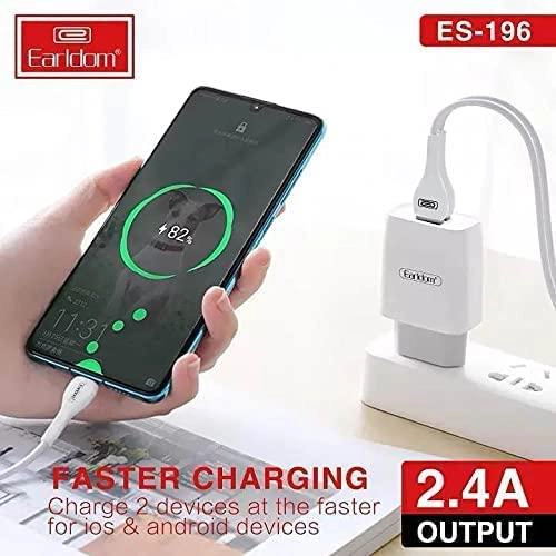 EARLDOM ES-196 Dual USB Travel Charger with Micro USB Cable – White