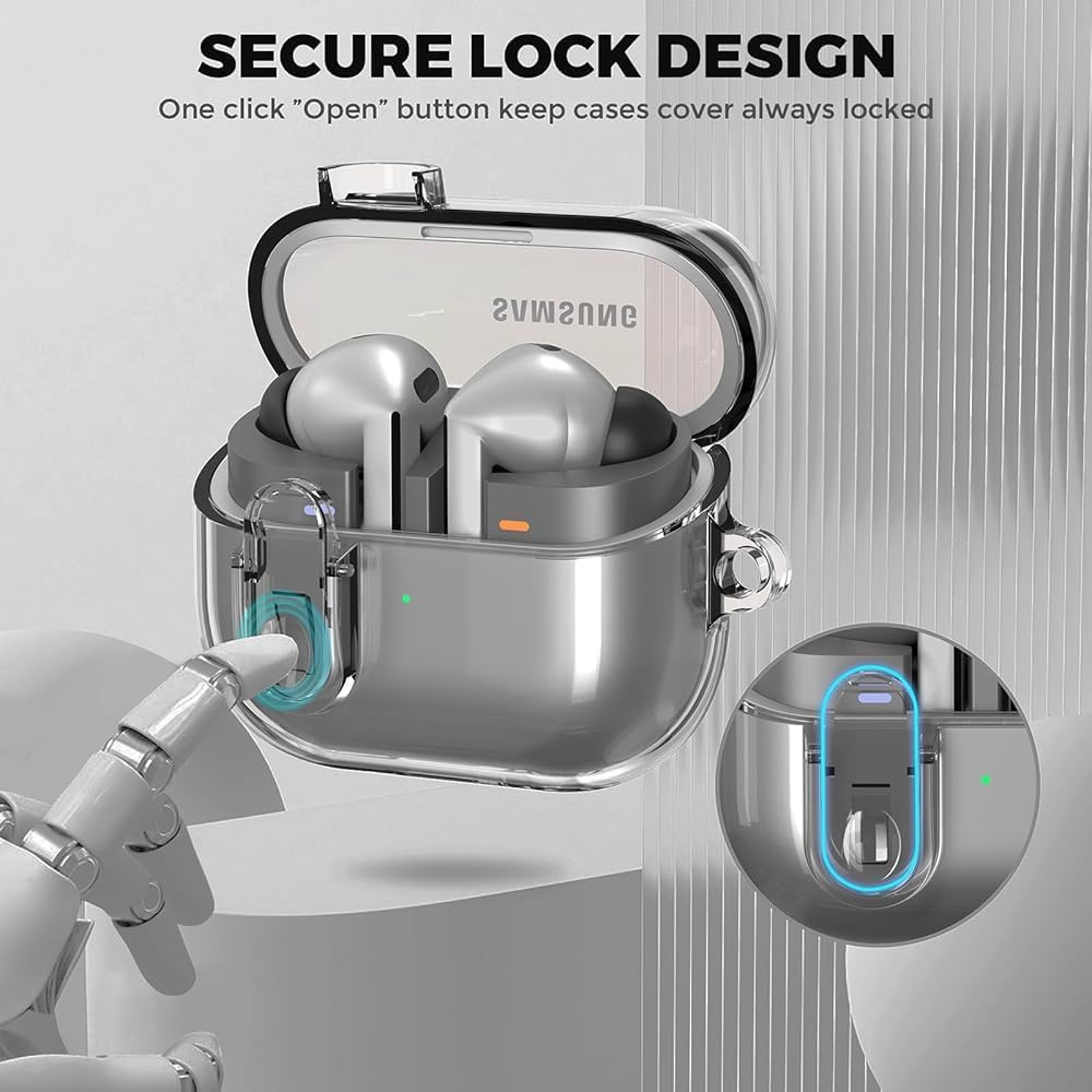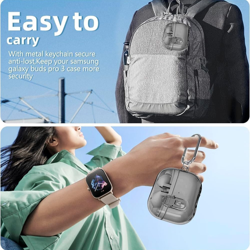 The secure lock clip design ensures your earbuds stay safely inside the case at all times, giving you peace of mind whether you’re commuting, traveling, or working out. It also comes with a sturdy keychain carabiner, allowing you to easily attach your buds to your keys, backpack, belt loop, or bag—perfect for an active lifestyle.