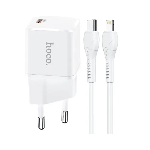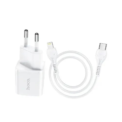 Hoco N10 – Fast Charger, Set With Type-C To Lightning Cable (3.0A – 20W – 1M) Compatbile – White