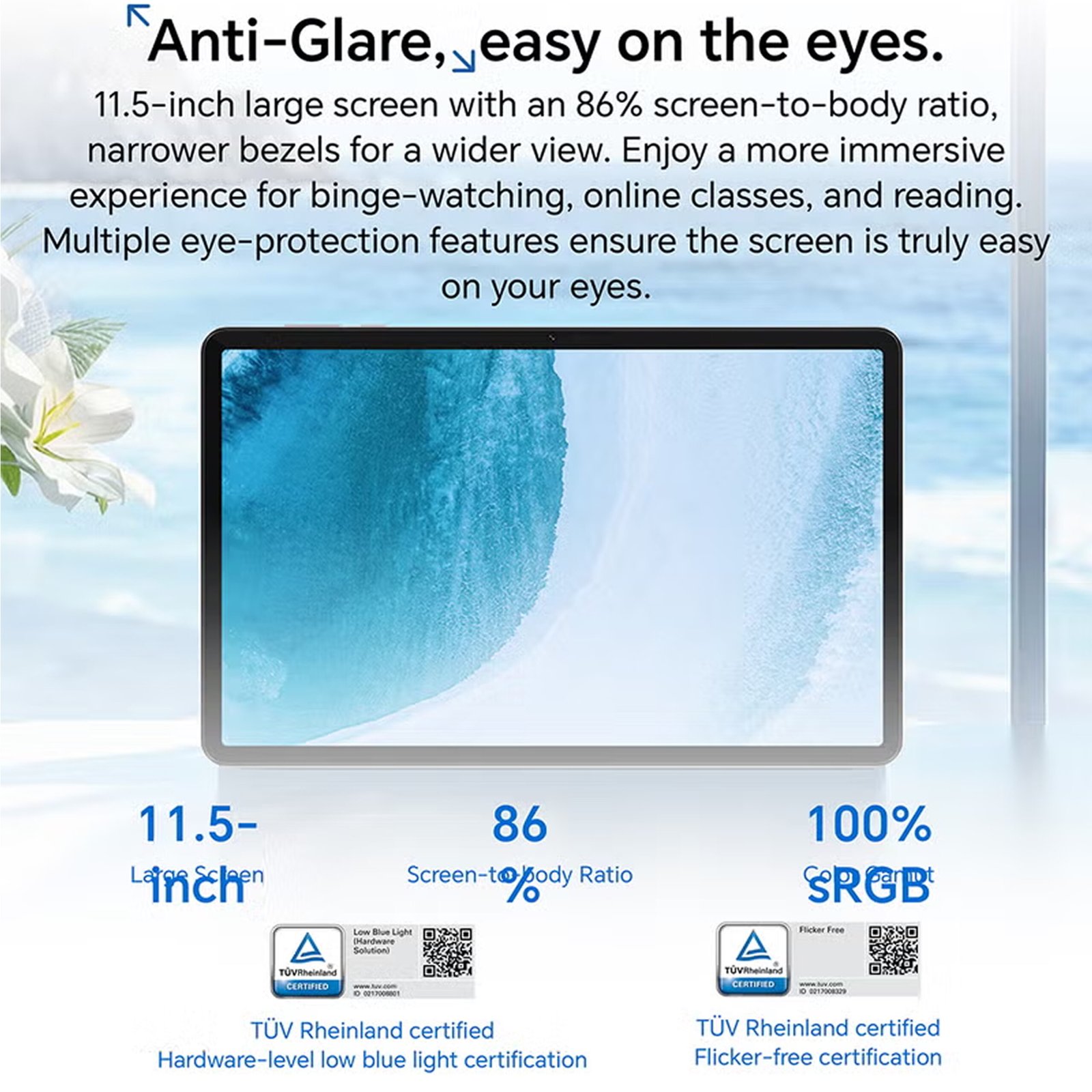Discover unparalleled comfort with the Honor Pad X9 PaperMatte Edition. Featuring an innovative anti-glare display with a natural paper-like texture, it provides ultimate eye protection and a unique visual experience in any lighting. With 6 speakers and smooth performance, it is the perfect device for students, readers, and digital creators.