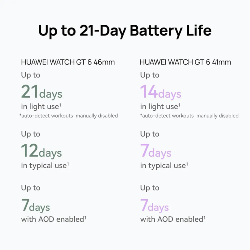Stay ahead of your health and fitness with the HUAWEI WATCH GT 6 – a sleek, GPS-enabled smartwatch with a stunning 1.47” AMOLED touchscreen, up to 21 days of battery life, and over 100 sports modes. Track your activity, monitor your wellbeing, and stay connected effortlessly.