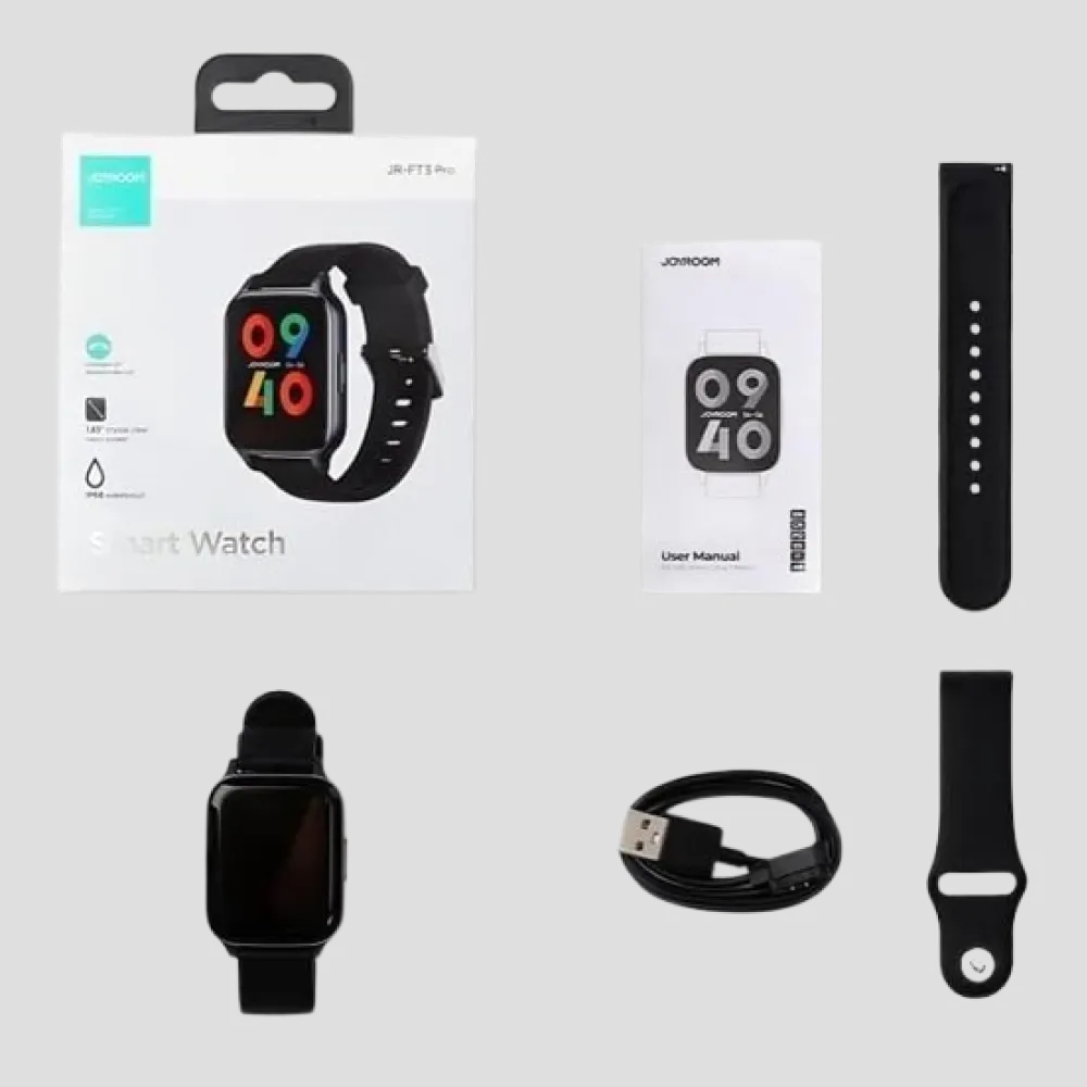 The Joyroom JR-FT3 Pro Fit-Life Series is the ultimate blend of modern style and high-end functionality. Equipped with a brilliant 1.83-inch high-definition screen, it provides a spacious and crystal-clear interface for notifications, apps, and health data. Its standout feature is the integrated Bluetooth calling system, allowing you to answer or make calls directly from your wrist without ever reaching for your phone. Fitness enthusiasts will appreciate the comprehensive health suite, including 24-hour heart rate monitoring, SpO2 tracking, and over 20 professional sports modes to analyze every move. Built with a durable zinc alloy frame and an IP68 waterproof rating, the JR-FT3 Pro is ready for any environment. With a long-lasting battery providing up to 10 days of power, it is the perfect reliable partner for your active and professional life.