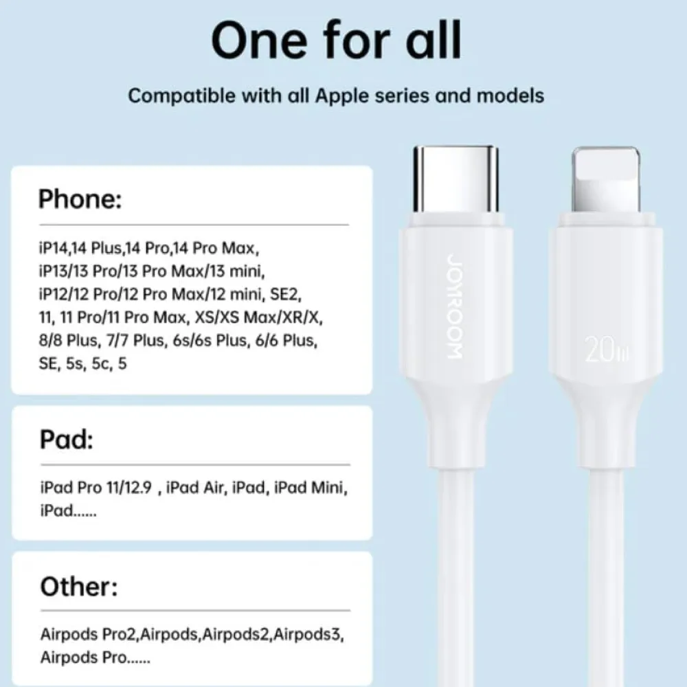 Power up your iPhone faster and safer with the Joyroom S-CL020A9 20W cable, designed for quick charging, stable data transfer, and long-lasting durability in a sleek 1-meter length.