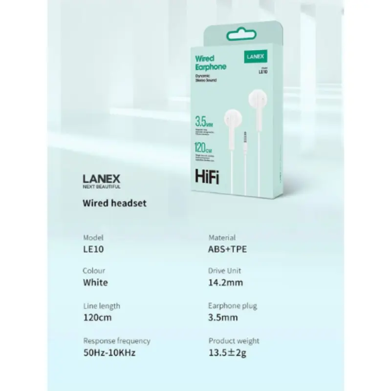 LANEX LE10 Wired Earphone Dynamic Stereo Sound