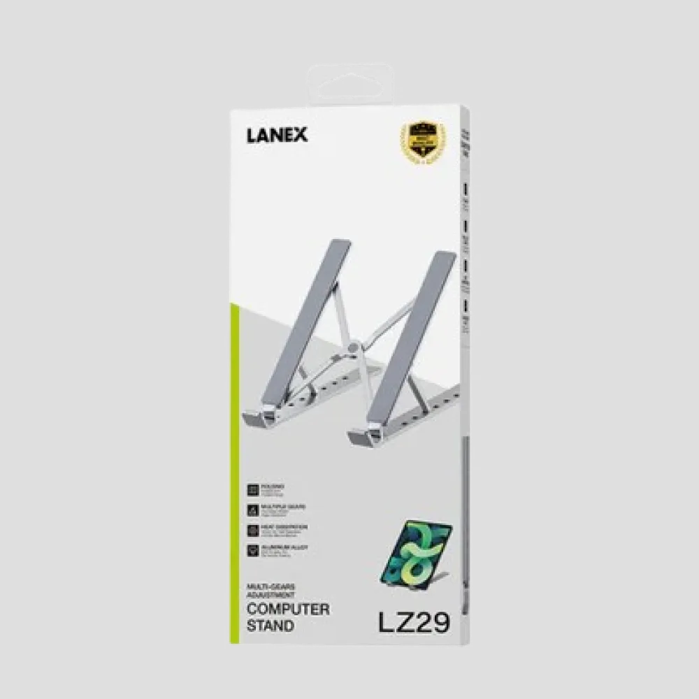 The LANEX LZ29 is a premium adjustable stand engineered to transform any desk into a professional ergonomic workspace. Featuring a sophisticated multi-gear adjustment system, it allows you to choose from several height and angle settings to find your perfect eye-level view, effectively preventing cervical fatigue and eye strain. Beyond comfort, the LZ29 is designed for performance; its open, hollow structure promotes natural airflow, acting as a heat sink to prevent your laptop from overheating during intensive tasks. Crafted with high-quality materials and equipped with non-slip silicone pads, it ensures your device stays securely in place without scratches. Whether you are using a compact tablet or a large laptop, its foldable and lightweight design means you can enjoy a comfortable setup anywhere—from busy cafes to home offices.