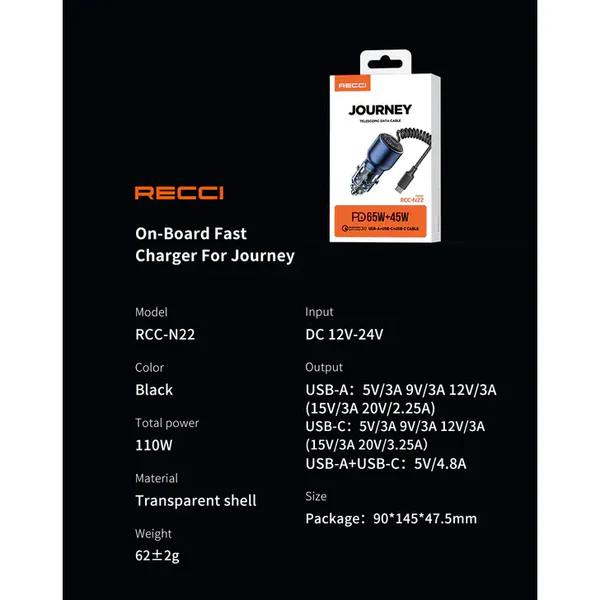 Recci Car Charger Journey Fast Charging 110W