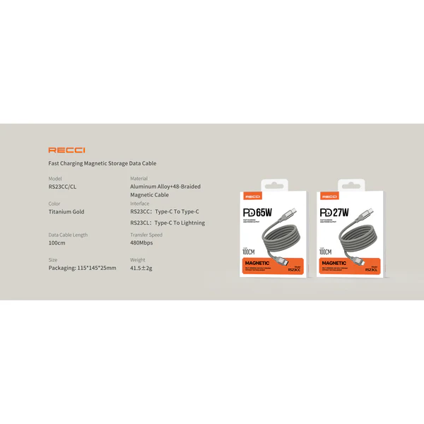 Recci Fast Charging Magnetic Cable Type-C TO Lightning 27W